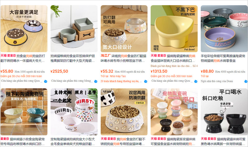 Các link shop bát ăn cho chó Trung Quốc giá rẻ và uy tín trên 1688, Taobao…