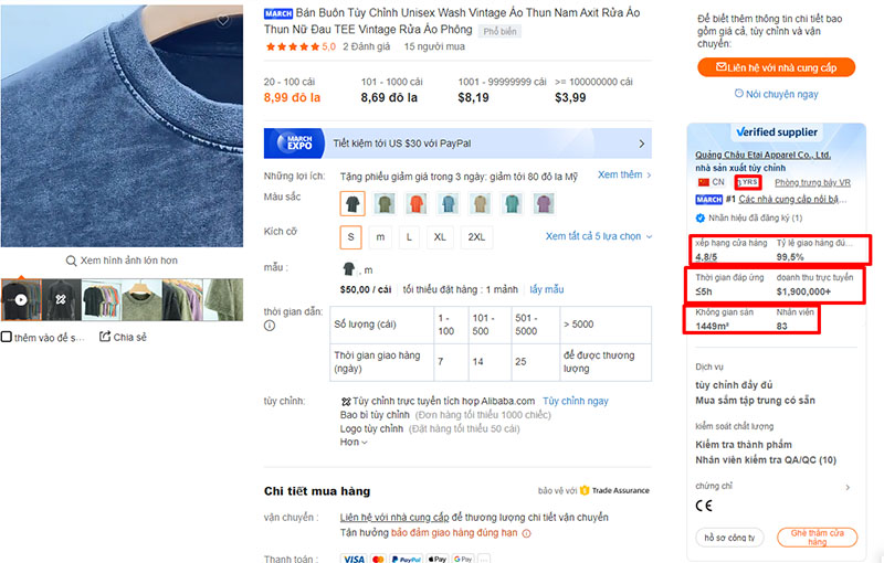 Những nhà cung cấp được gắn nhãn Verified Supplier thường đã cung cấp video quay xưởng, hình ảnh toàn cảnh nhà máy, dây chuyền sản xuất… và được Alibaba/đơn vị thứ ba kiểm tra. Họ cũng thường ghi rất chi tiết thông tin về năng lực sản xuất, quy mô, sản phẩm.