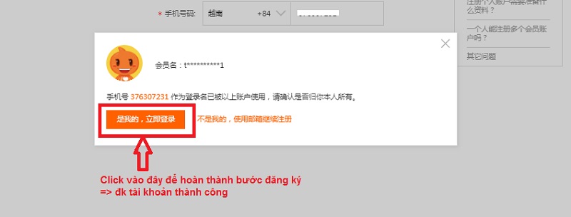 Chú ý: Chỉ với 1 tài khoản này, quý khách có thể đăng nhập đồng thời tại web 1688.com, kể cả website tmall.com và taobao.com.