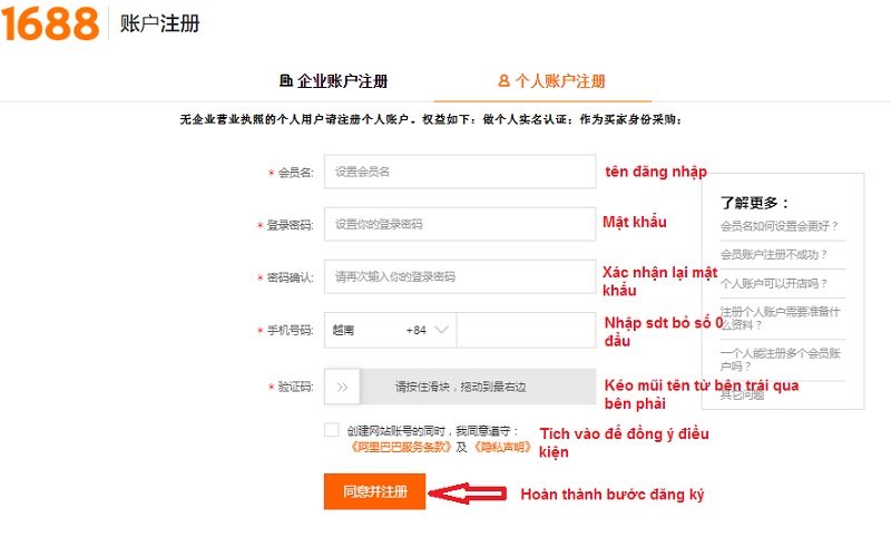 Bước 1 : Đăng ký tài khoản thành viên trên 1688.