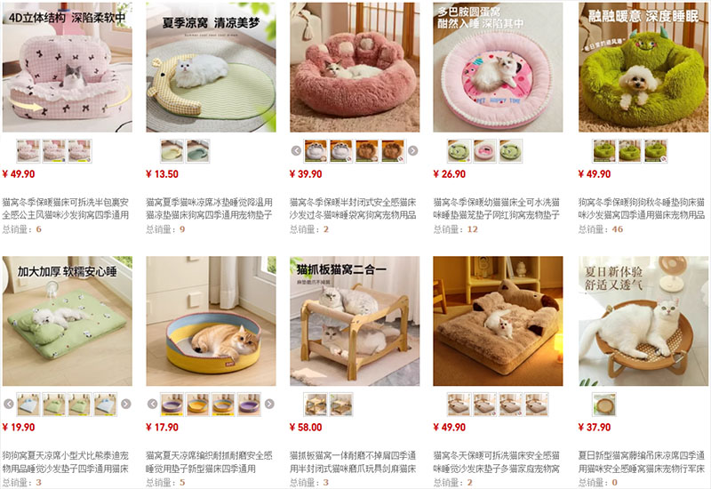Bạn chọn sẵn vài mẫu nệm cho mèo trên các sàn (Taobao, 1688, Tmall…) rồi gửi link cho đội ngũ Hoa Nam. Nếu chưa biết tìm ở đâu, Hoa Nam cũng có thể gợi ý sẵn các nhà cung cấp uy tín chuyên đồ thú cưng.