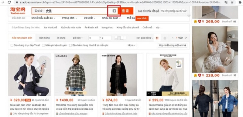Bấm vào icon camera ở bên phải thanh tìm kiếm Taobao