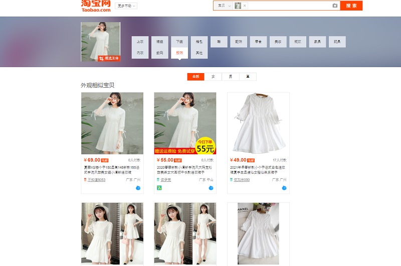 Ngay sau khi ảnh được upload, Taobao sẽ hiển thị một loạt sản phẩm giống hoặc tương tự.