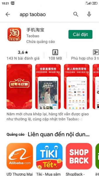 Với Android: Vào CH Play, tìm “Taobao” rồi cài đặt.