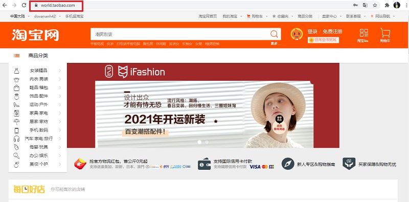 Vào trang chủ Taobao, nhìn phía trên bên trái, chọn lại khu vực là Trung Quốc đại lục.
