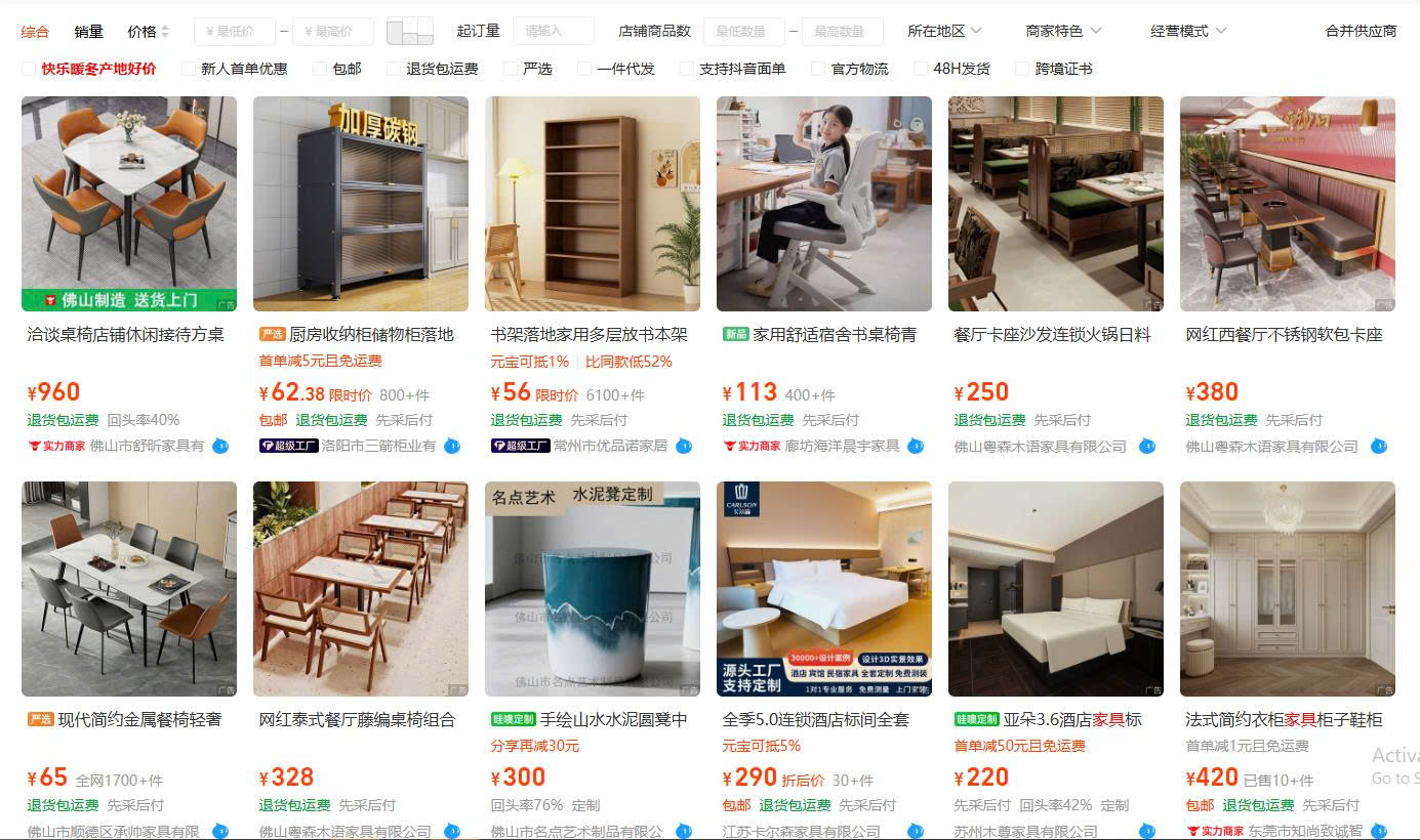 Về bản chất, bạn đang dùng các sàn thương mại điện tử như bản đồ thị trường nội thất Trung Quốc: