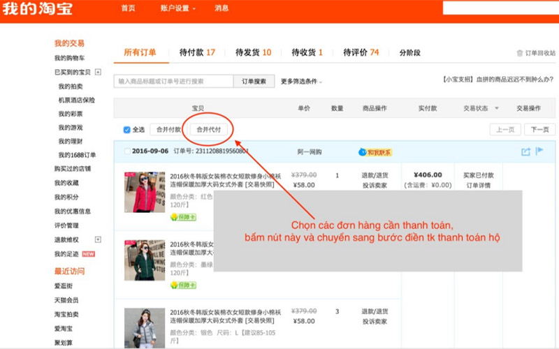 - Bước 4: Nhờ thanh toán hộ 1688.