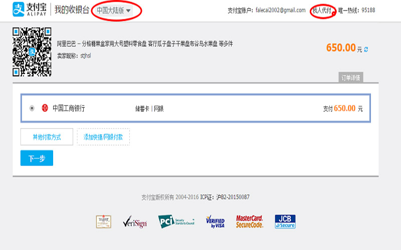 Khi đã chọn xong sản phẩm cần mua, người mua hàng sẽ tiếp tục vào mục “Thanh toán”. Tại đây, bạn có thể thanh toán đơn hàng luôn nếu đã xác thực tài khoản Alipay thành công. Còn nếu chưa xác thực, thì bạn sẽ phải chọn mục nhờ người thanh toán hộ Alipay bằng cách nhập tài khoản Alipay của người thanh toán hộ, ghi chú và nhập mã code.