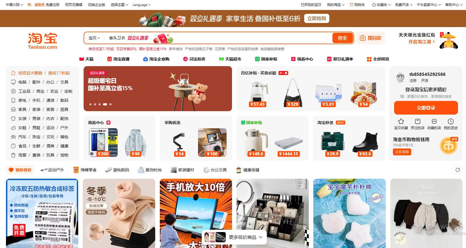 Trước tiên, bạn truy cập vào Taobao tại địa chỉ taobao.com, sử dụng google dịch nếu không biết tiếng Trung.