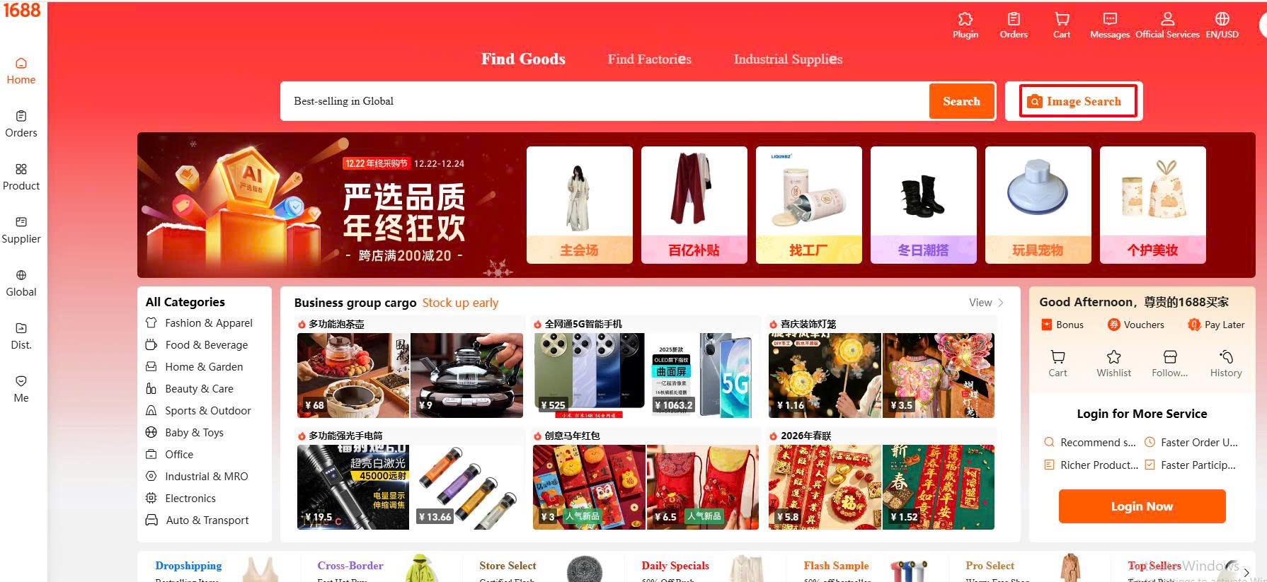 Người dùng muốn tìm nguồn hàng bằng hình ảnh trên 1688, bạn thực hiện theo các bước như sau: