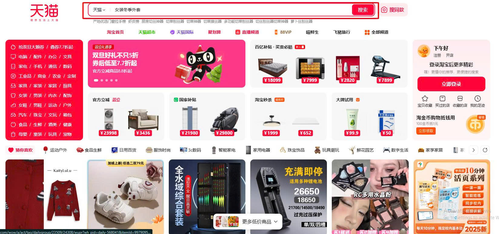 Tìm kiếm sản phẩm bằng từ khóa trên Tmall