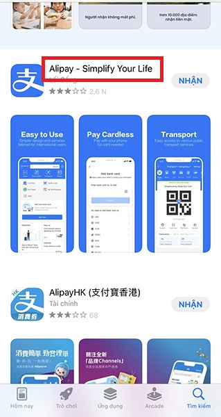 Tải, cài đặt app Alipay cho hệ điều hành IOS