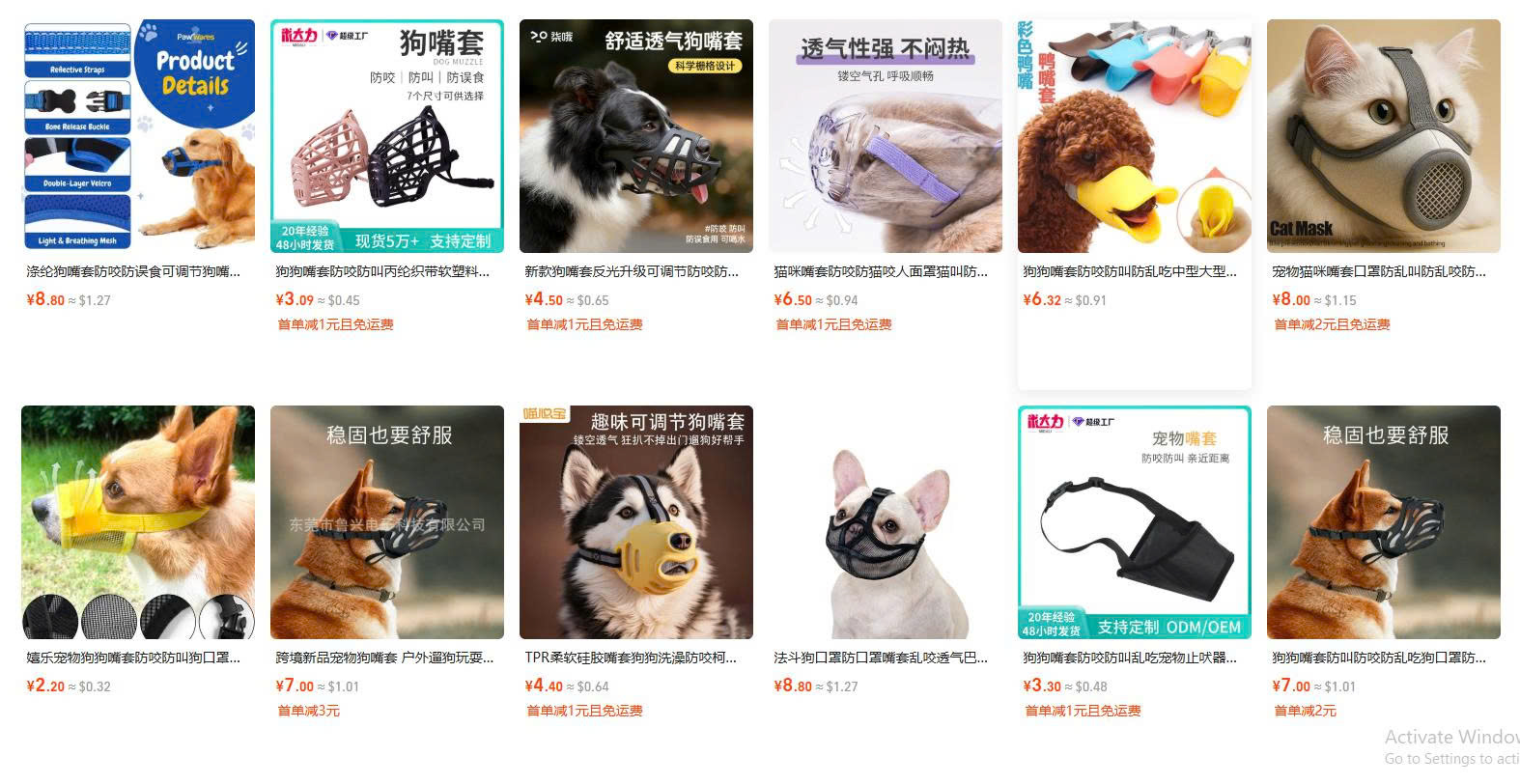 Kinh nghiệm chọn link shop rọ mõm cho chó Trung Quốc uy tín trên Taobao, 1688