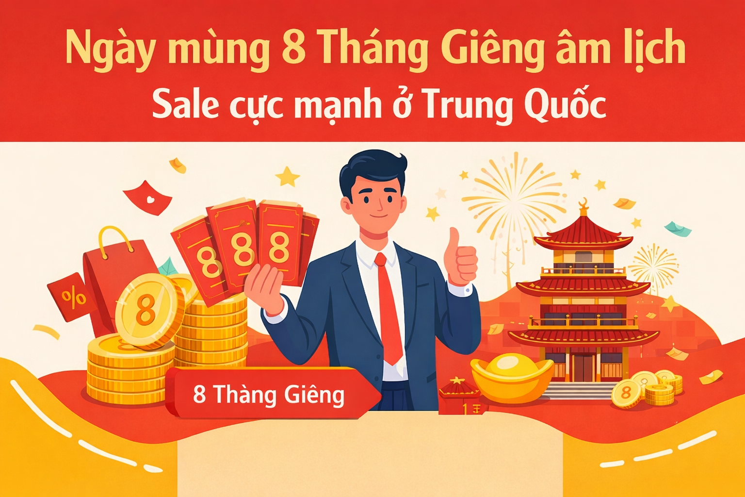 Theo quan niệm dân gian Trung Quốc, số 8 là con số mang ý nghĩa “phát tài phát lộc”, bởi cách phát âm của số 8 (“bát”) gần giống với chữ “phát”. Vì vậy, mùng 8 tháng Giêng được xem là ngày đẹp nhất để khai xuân, mở hàng và khởi động việc kinh doanh. Vào thời điểm này, rất nhiều shop và xưởng Trung Quốc tung ra các chương trình giảm giá, ưu đãi đầu năm với mong muốn lấy may, thu hút đơn hàng và tạo đà kinh doanh thuận lợi cho cả năm.