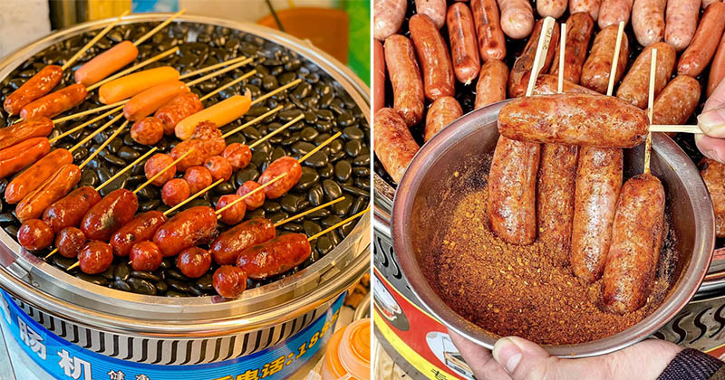 Xúc xích tẩm gia vị Trung Quốc, nướng lên thơm béo, dai giòn hấp dẫn.